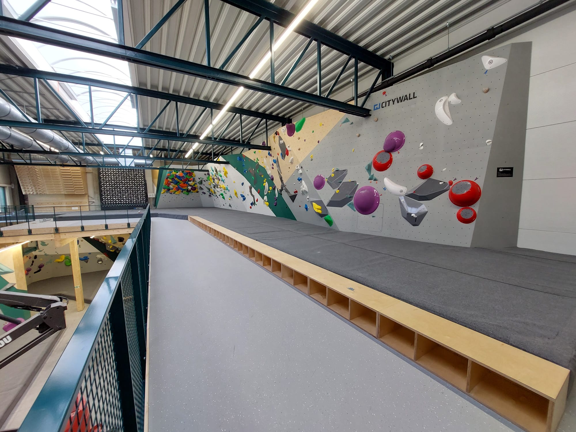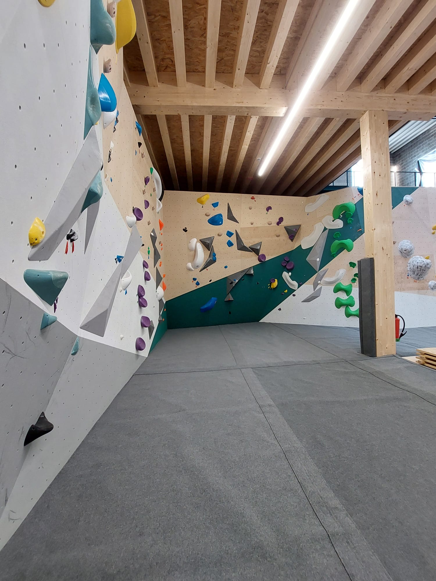 A votre disposition : murs variés, nouvelles prises d'escalade et parcours de qualité, Spraywall, Kilter, Pan Gullich, zone d'entrainement et d'étirement.